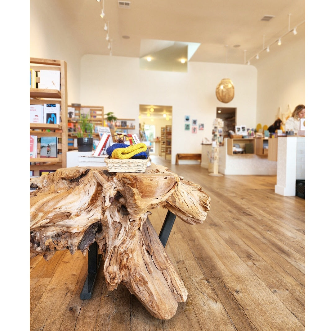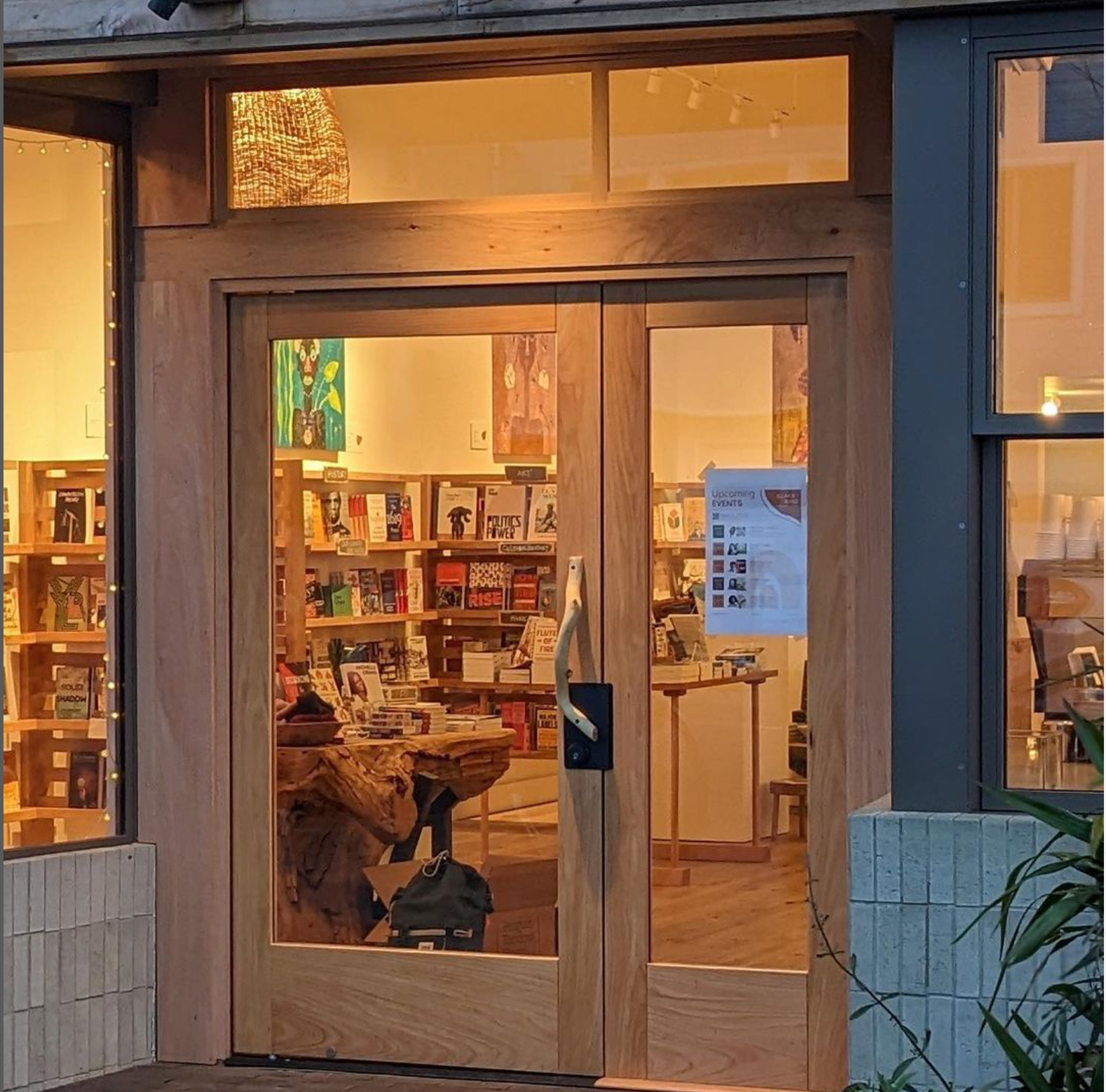 We support and lean into San Francisco’s diverse creative community. So many talented local makers and artists have helped build our bookstore from the ground up. Their passion and ingenuity are woven throughout our space, from our handcrafted bookshelves and tables (IG @woodshopsf) and custom backyard shed (IG @jesse_____singer), to the SF-made denim home-goods (IG @ubiind), to the revolving art show with Outer Sunset artists (IG @mamaladysmix and @ginkgozee), charming watercolor notecards (IG @painthousesf), and beautiful ceramics (IG @audricsspoon). And of course the many many wonderful books by Bay Area authors that fill our shelves.